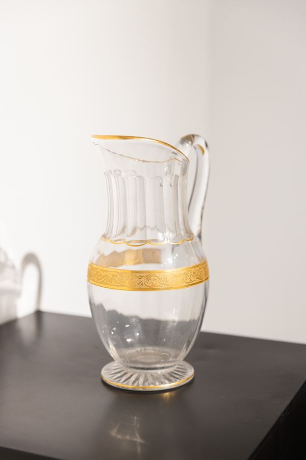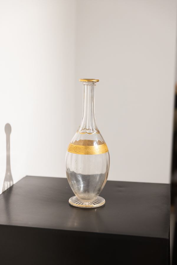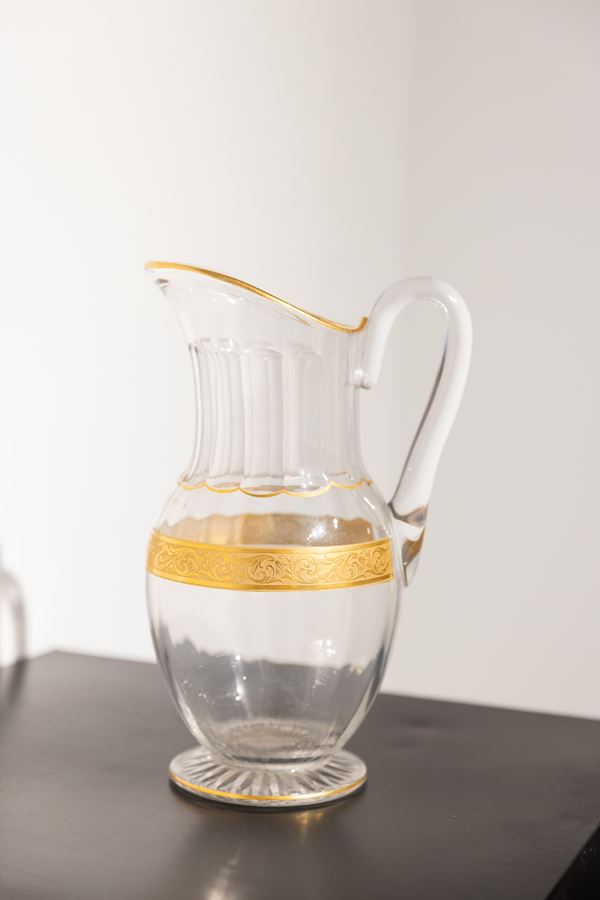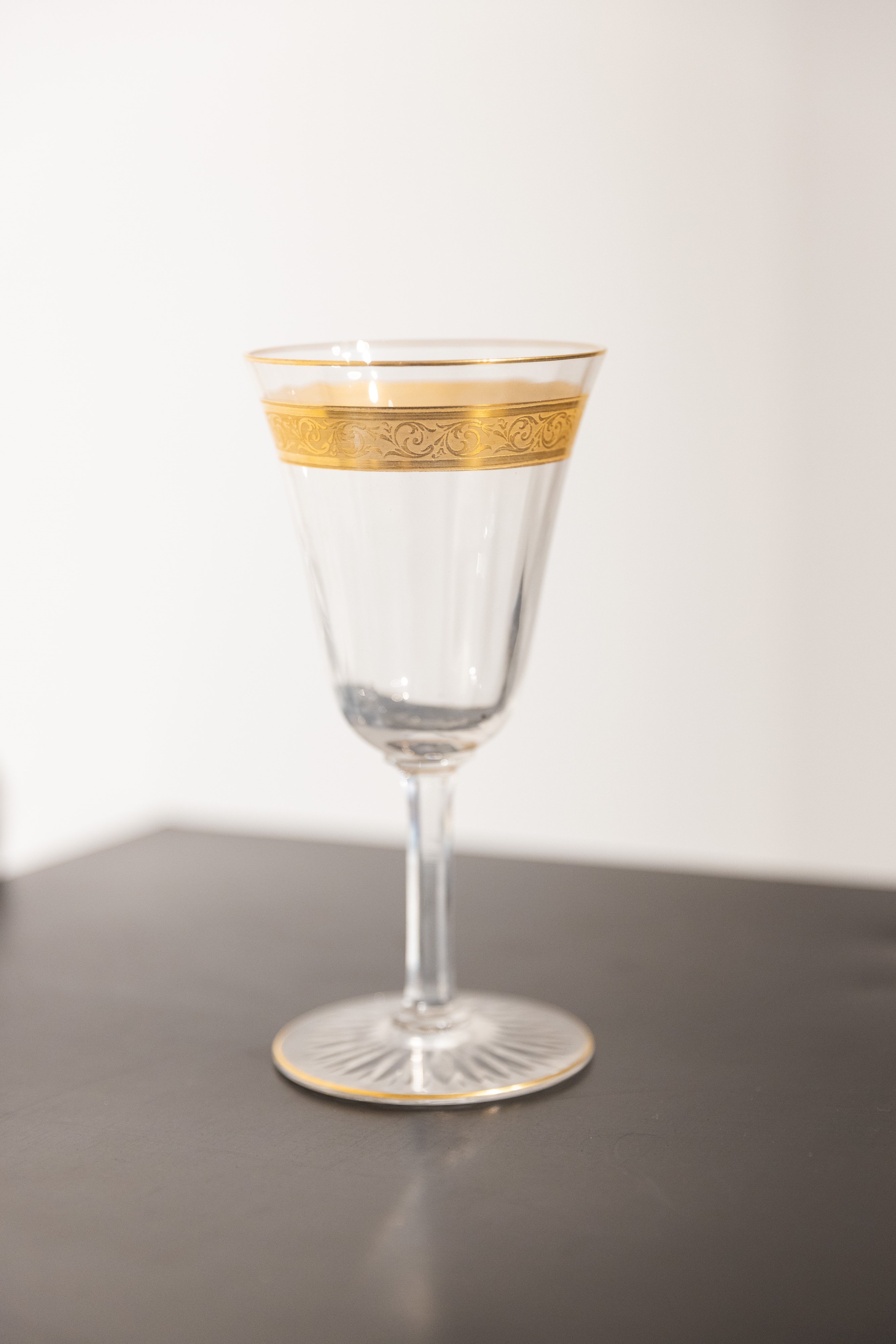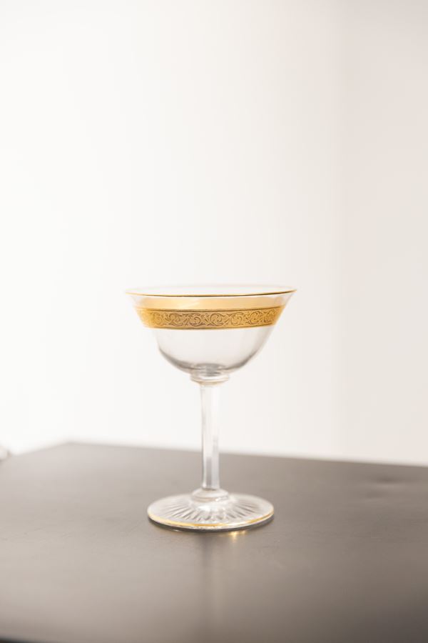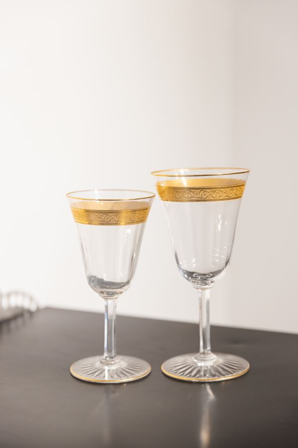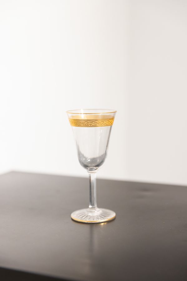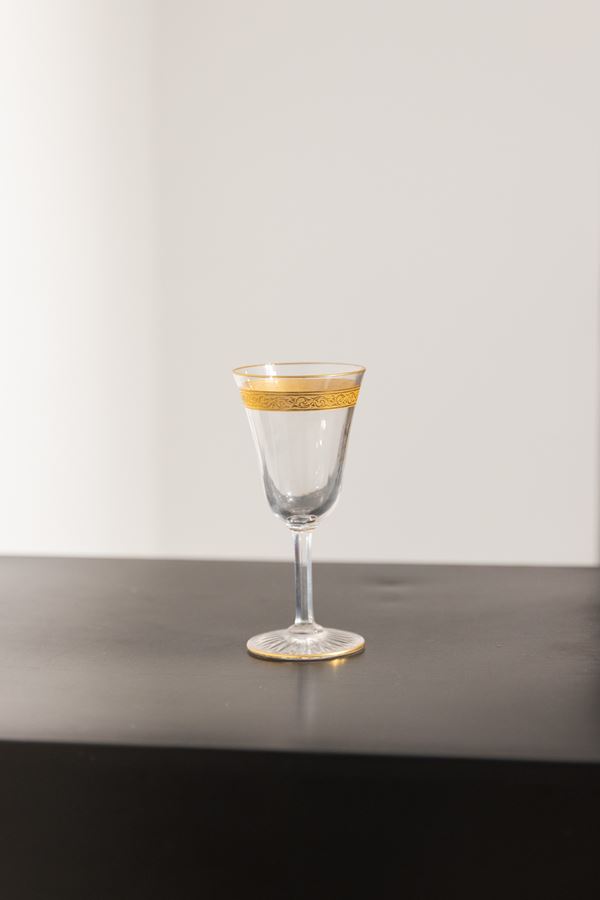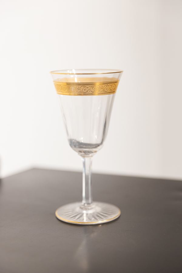 Servizio di bicchieri in cristallo con decoro e bordo oro