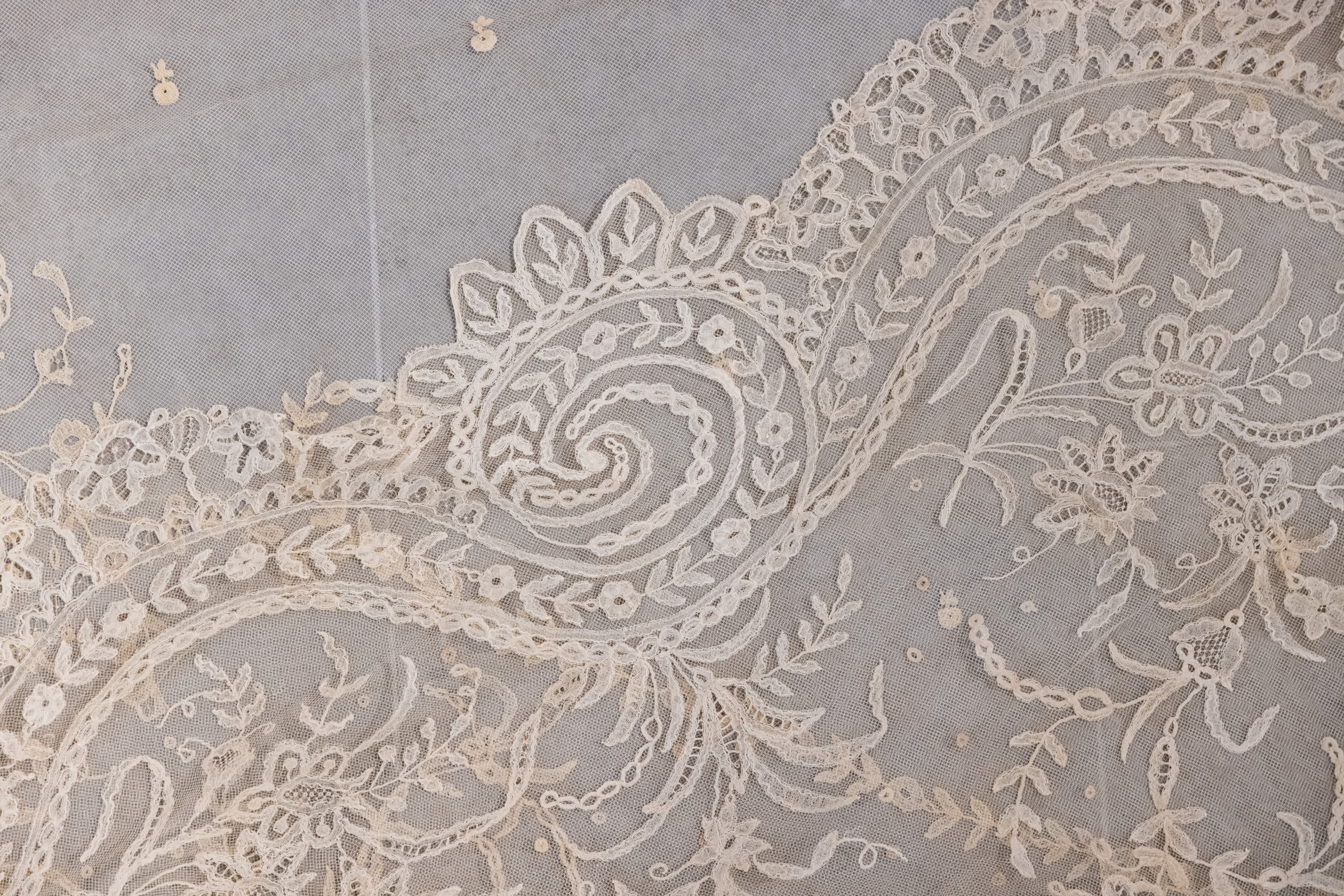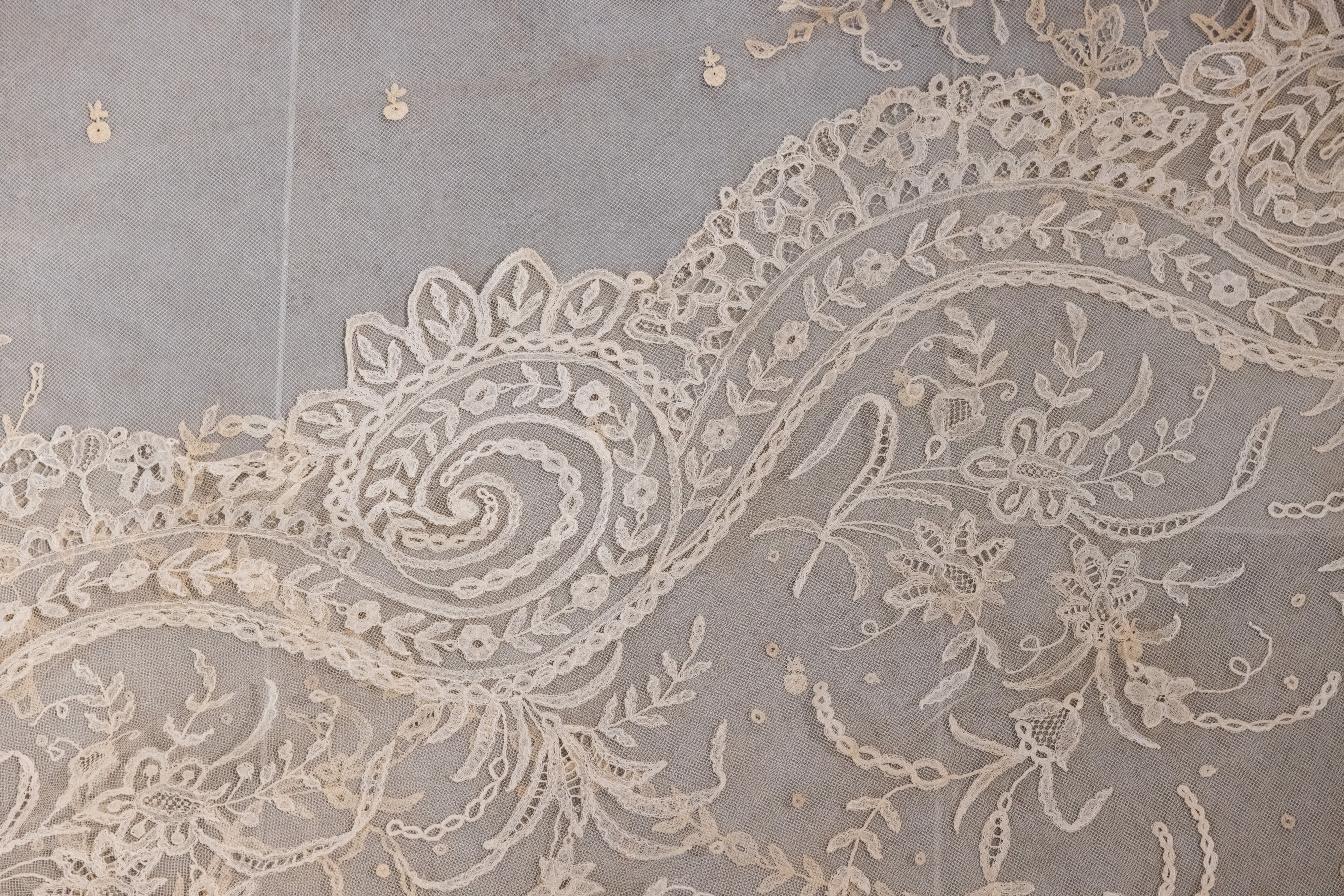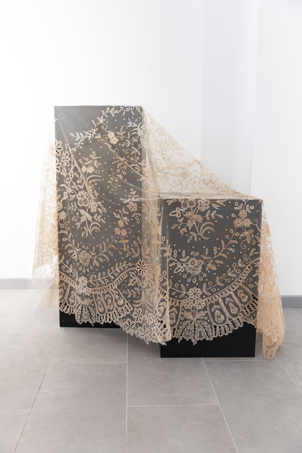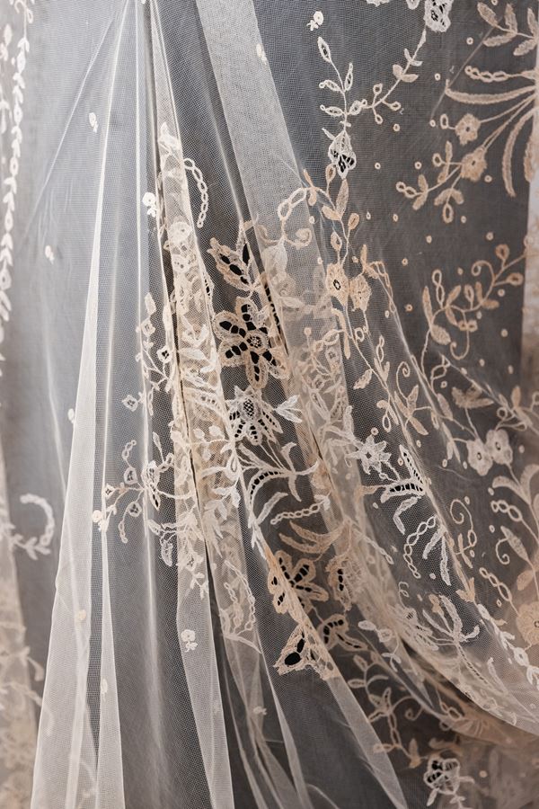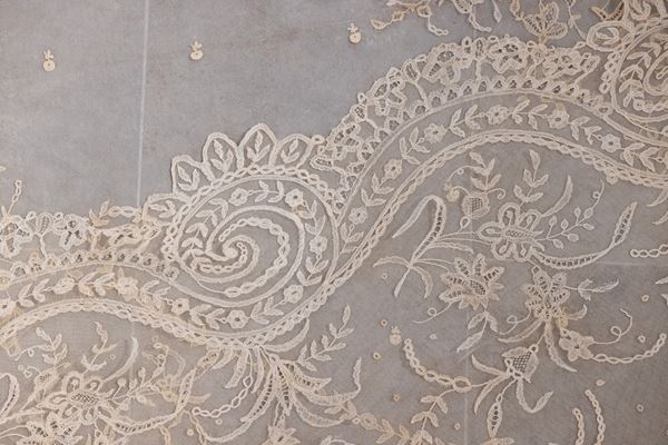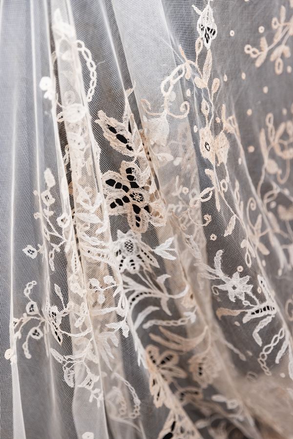 Velo del '700 ricamato a mano con merletto di Burano, XVIII secolo