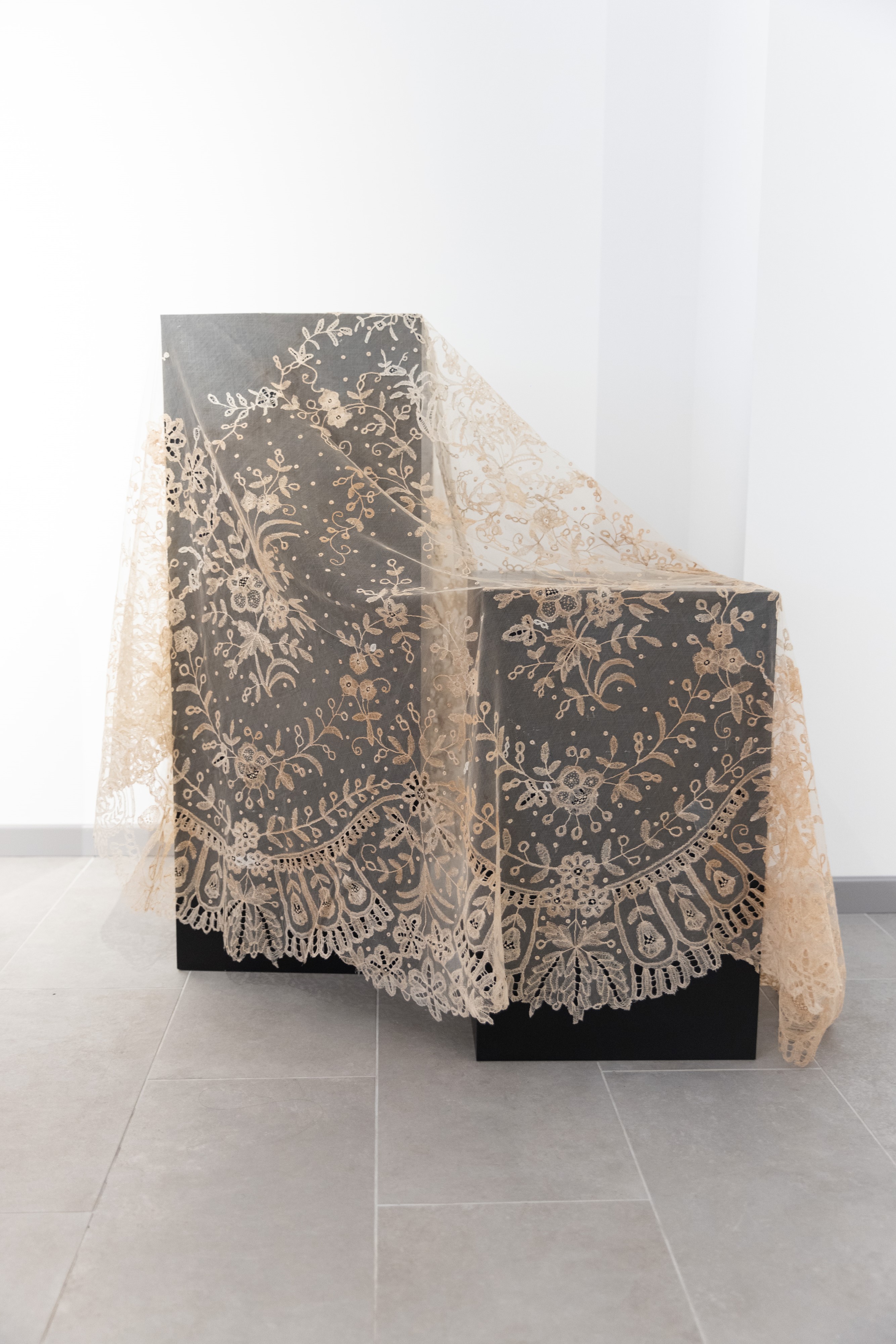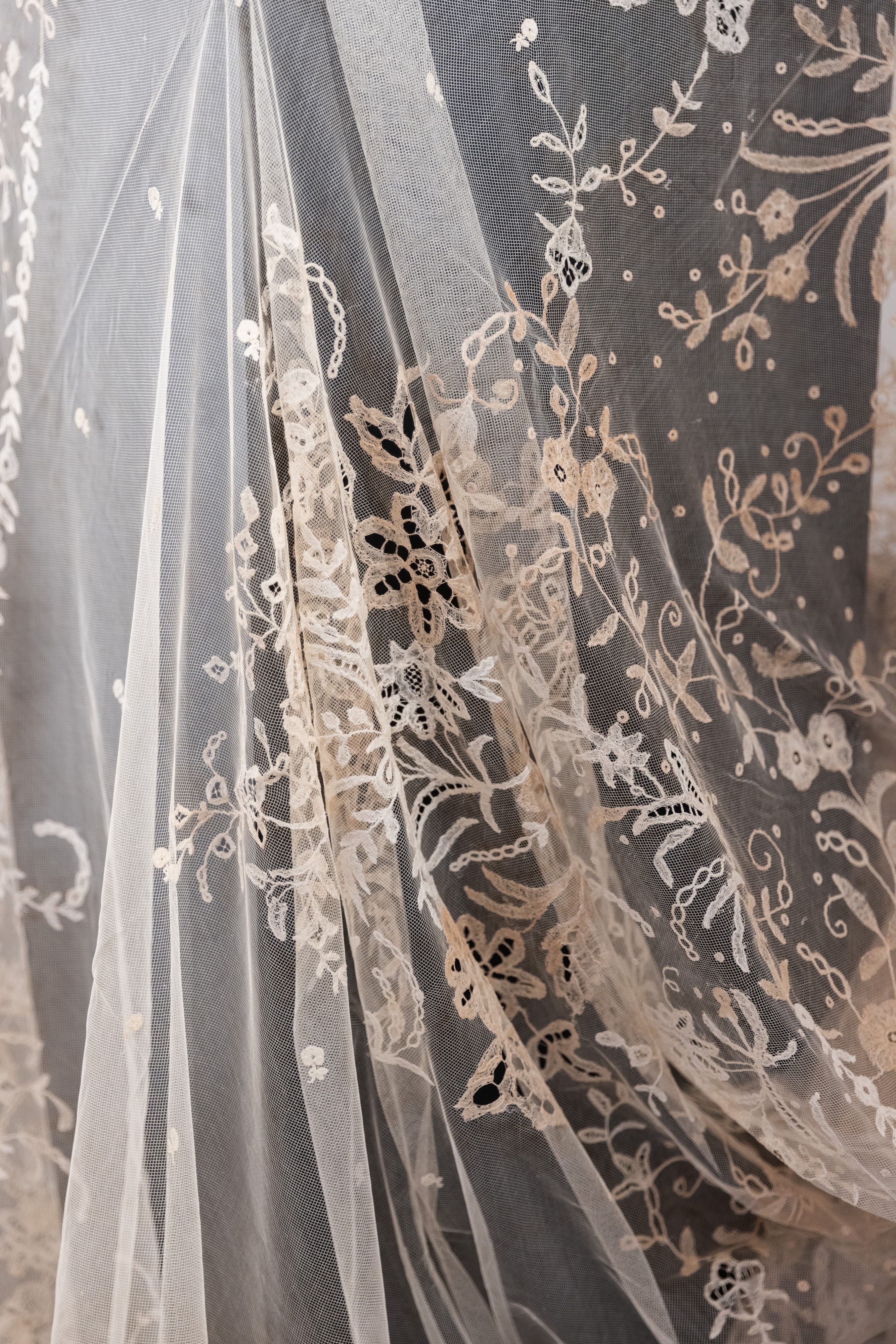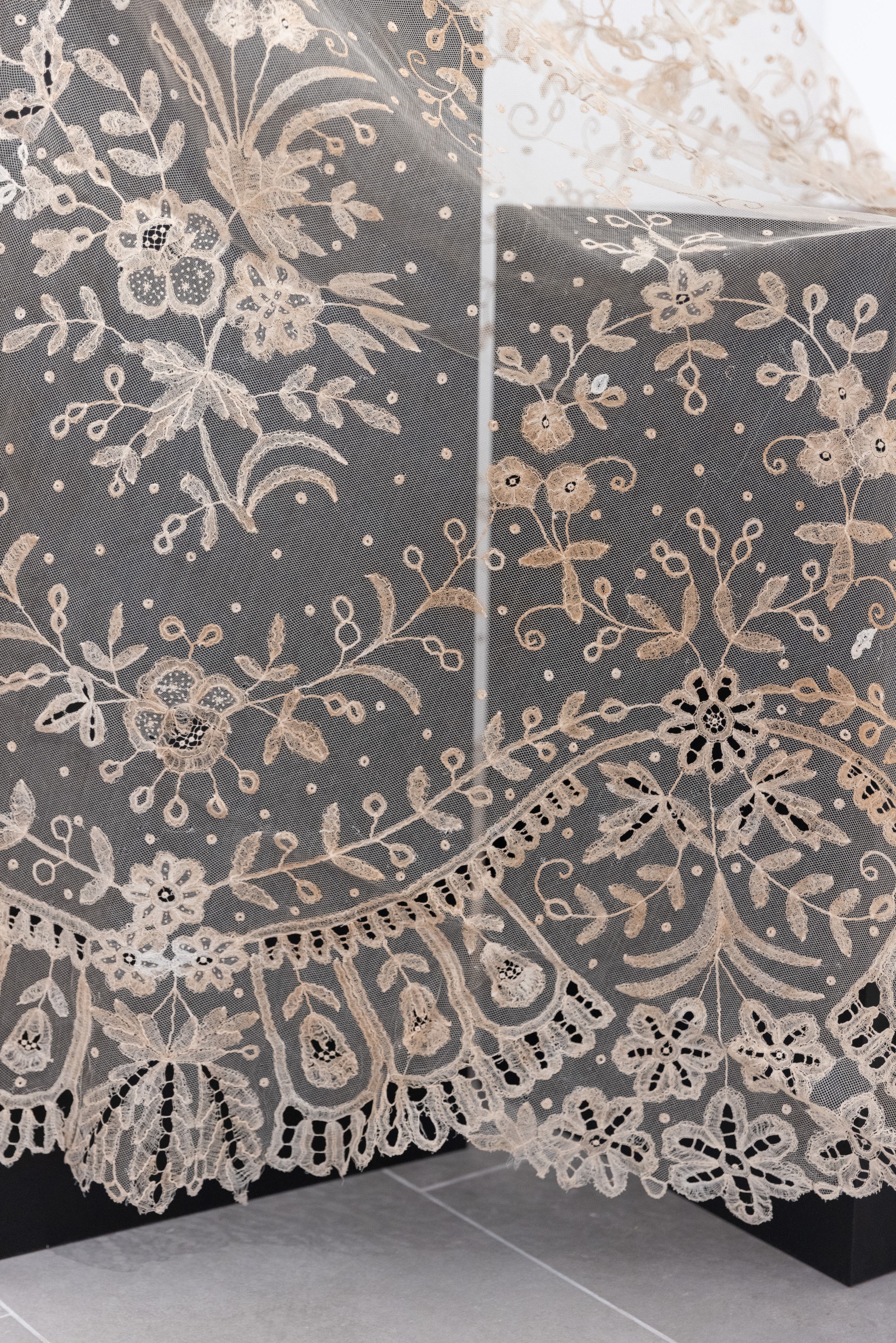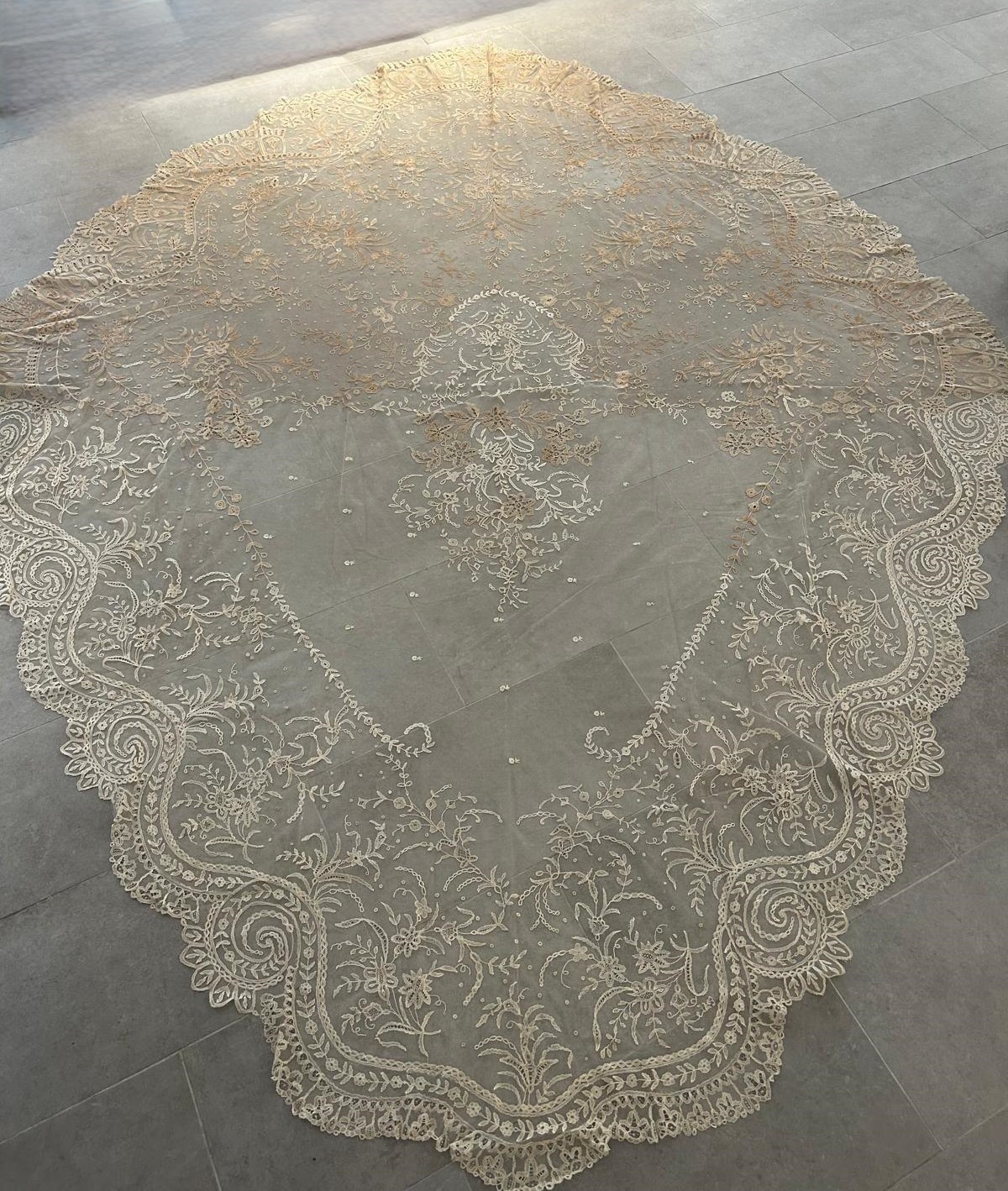 Velo del '700 ricamato a mano con merletto di Burano, XVIII secolo