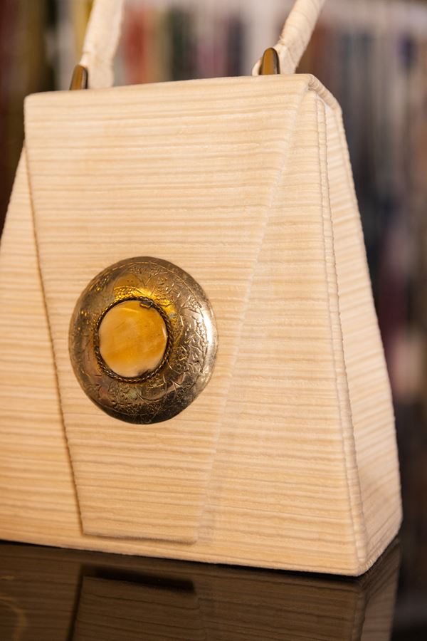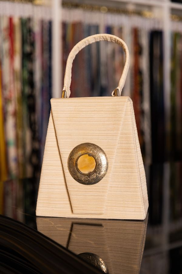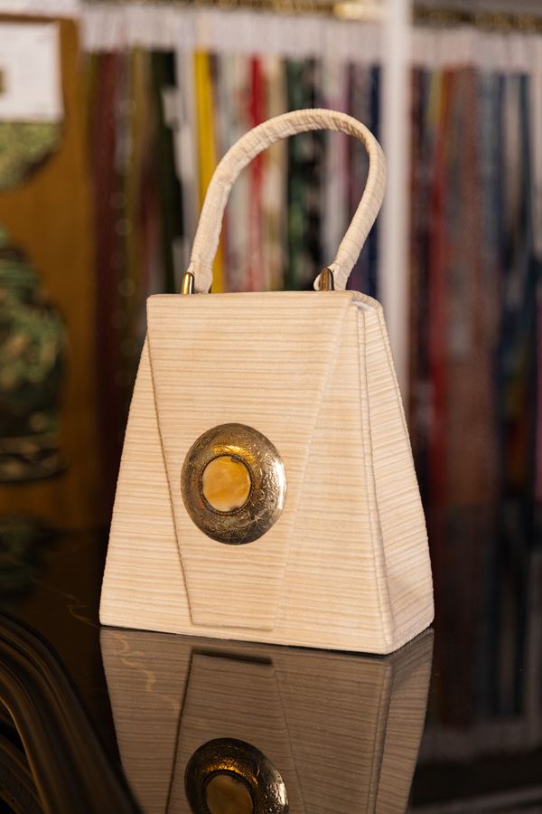 Borsa Lavi Bags ealizzata a mano con velluto imprimé con pietra in osso marocchina