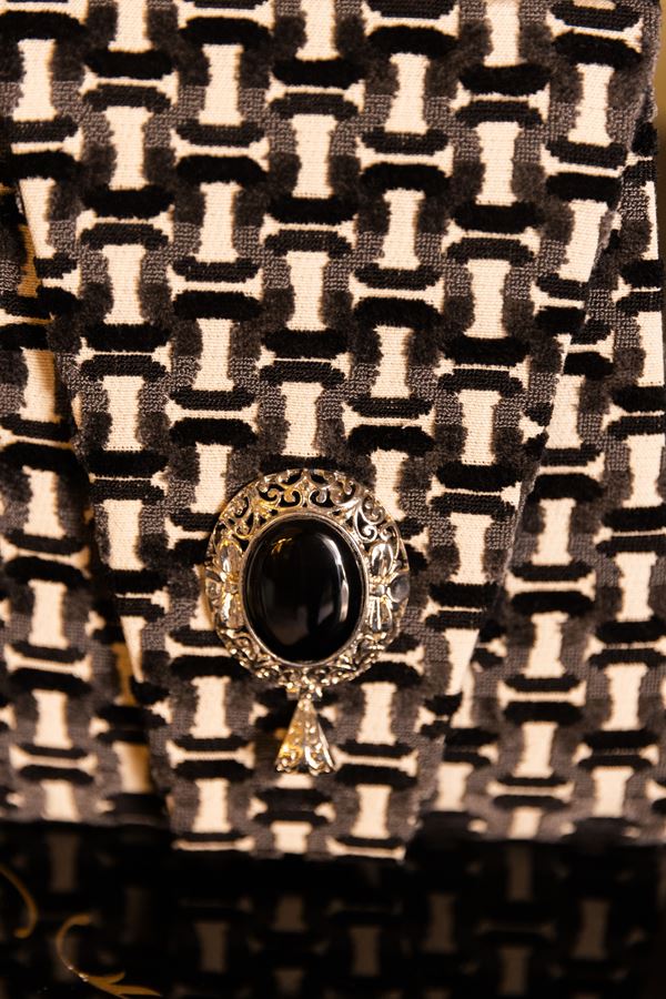 Borsa Lavi Bags realizzata a mano in tessuto velluto operato con gioiello in ottone cromato e pietra onice/opale