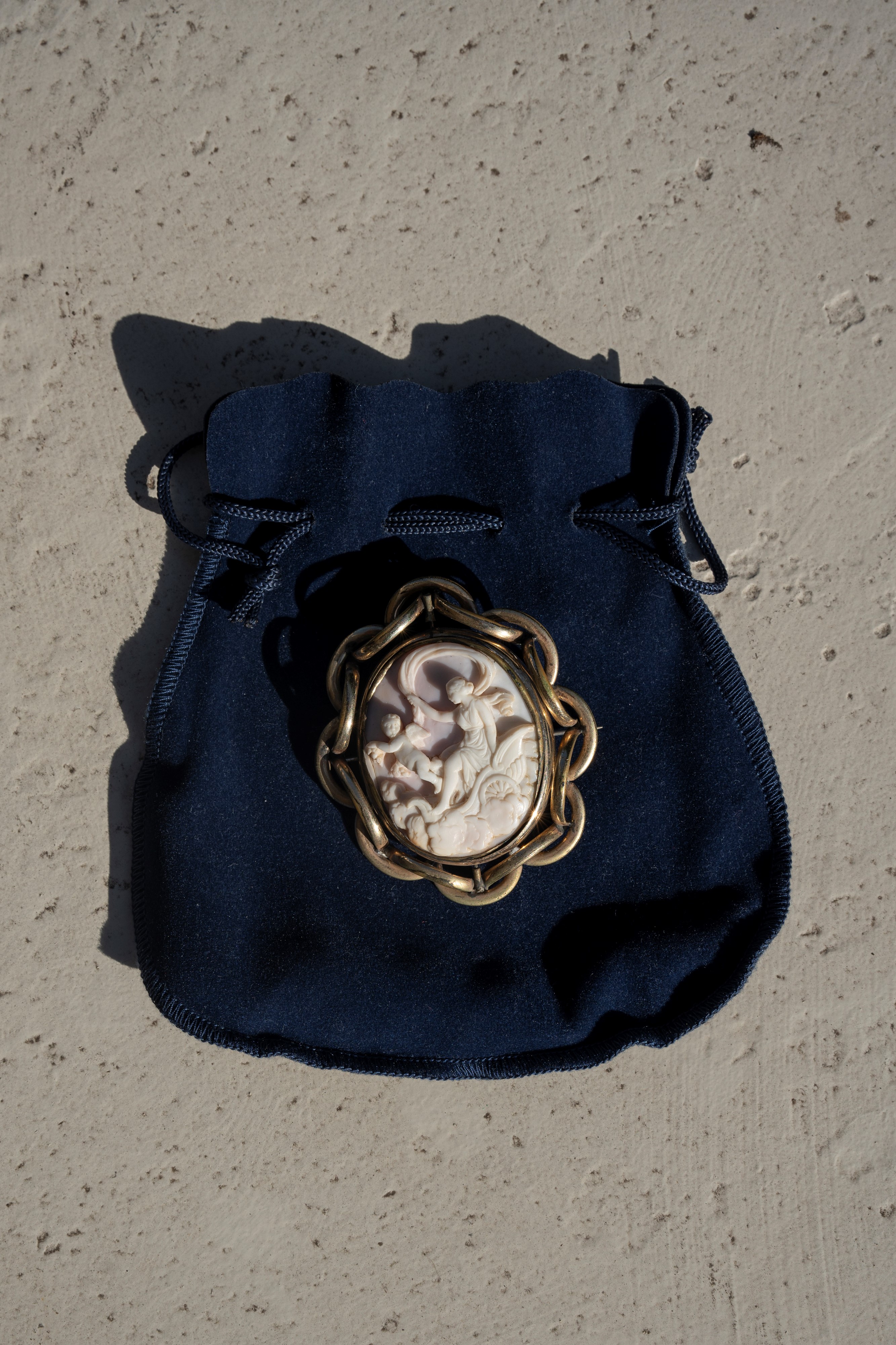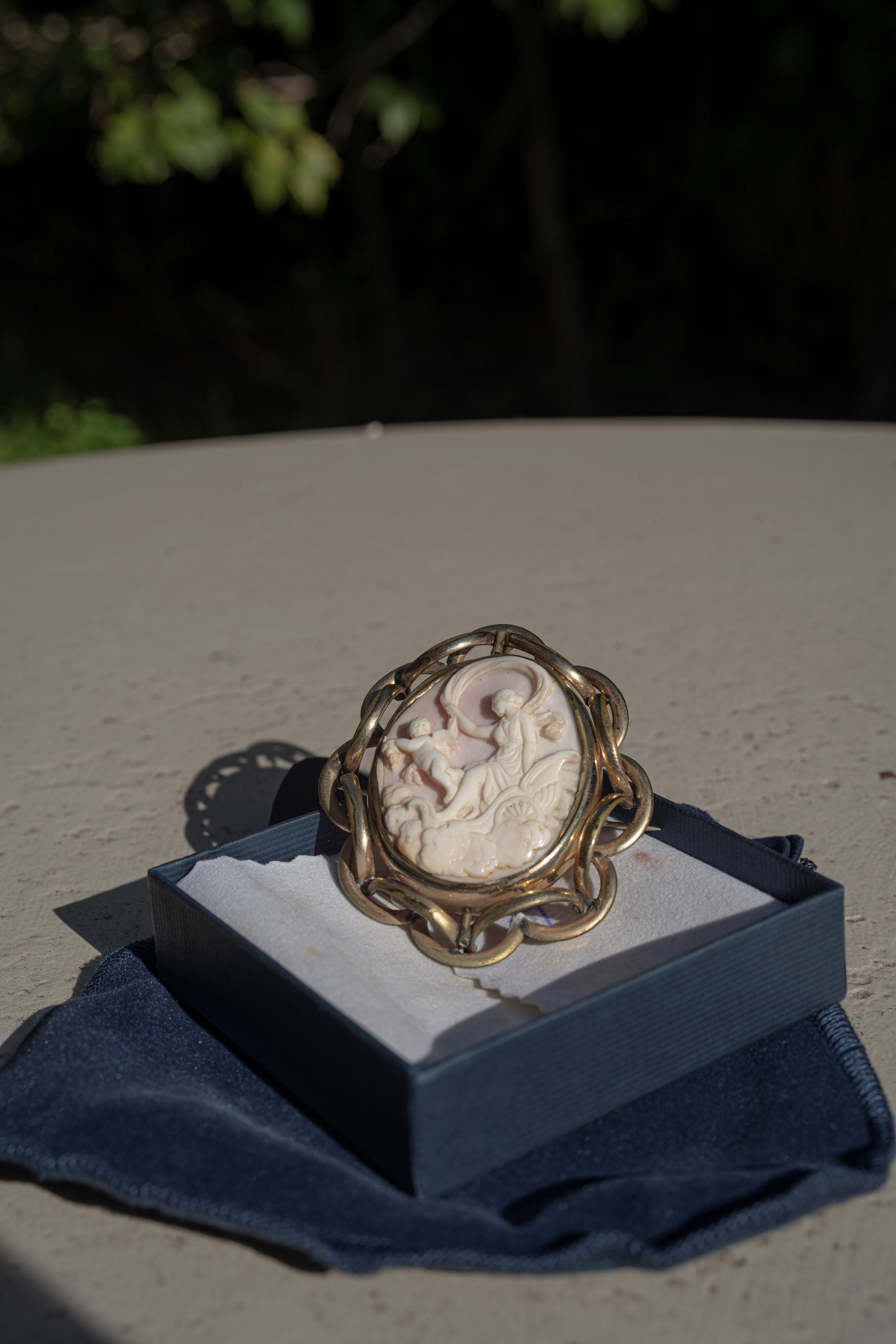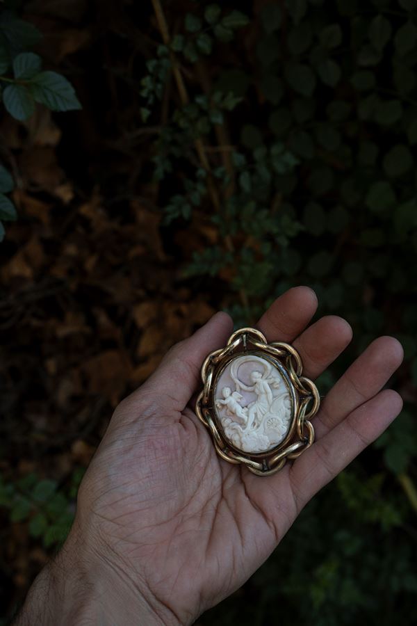 Montatura in lega e conchiglia con piccola frattura a sinistra.