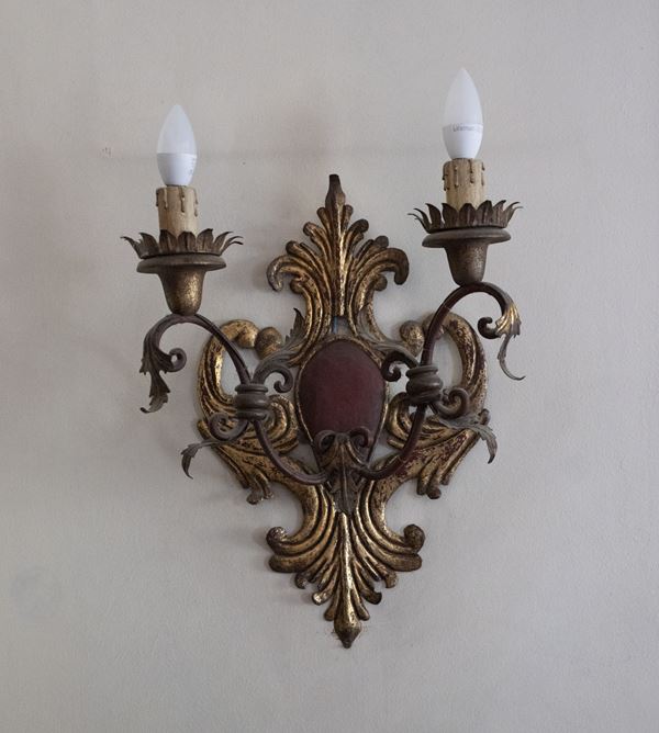 Applique in ferro, lamiera e legno dorato, Fine XVIII secolo