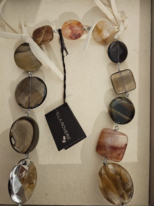 Collana in argento con pietre dure simil occhio di tigre e agata Della Rovere