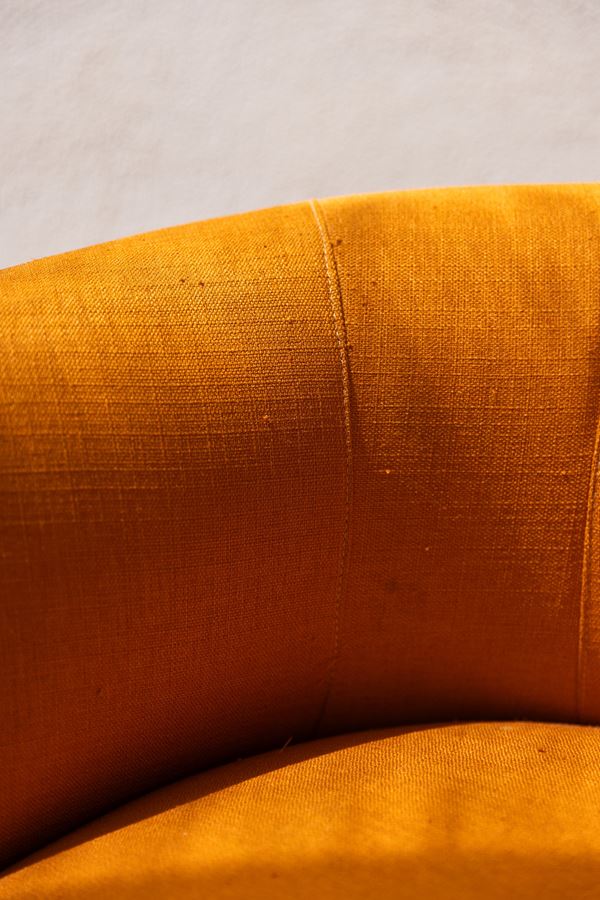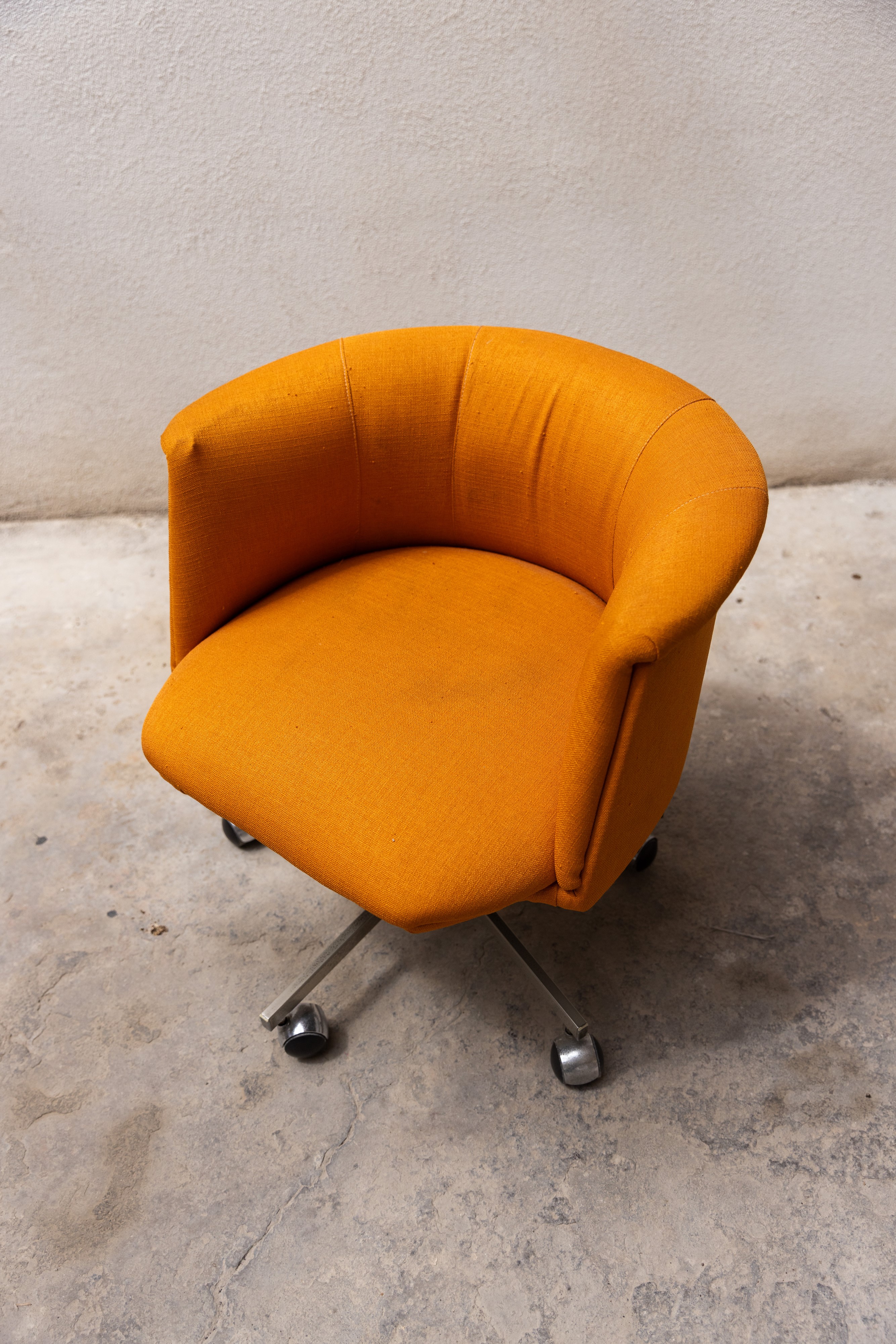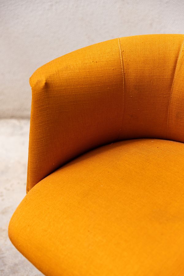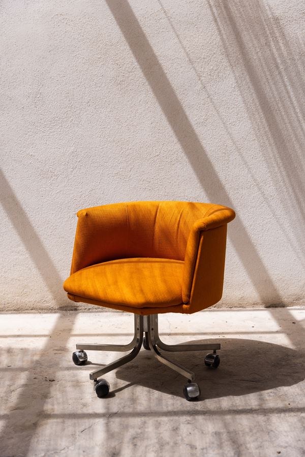 Coppia di poltroncine anni '70 in acciaio in tessuto arancione