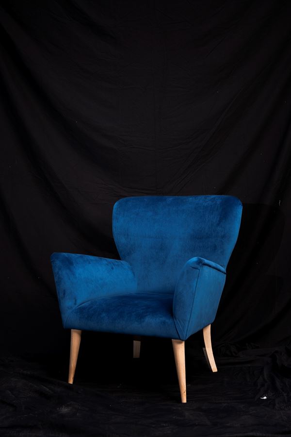 Piedi in legno d'acero. Altezza complessiva 84 cm, altezza della seduta 36 cm e larghezza complessiva 70 cm