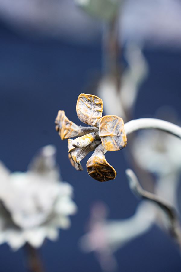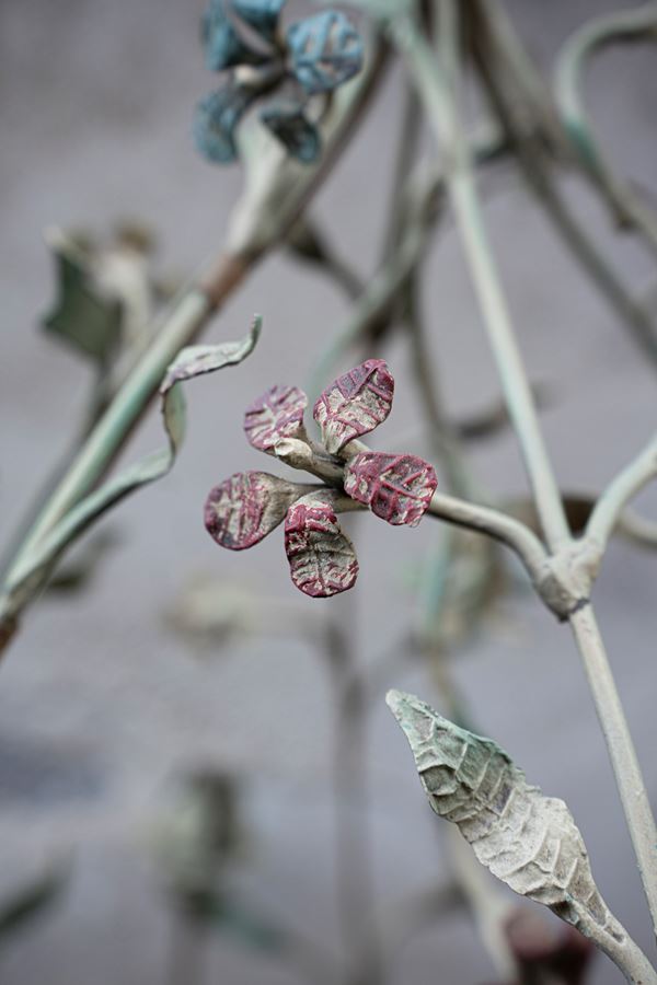 Lampadario in ferro battuto con decoro floreale, XX secolo