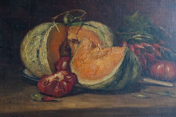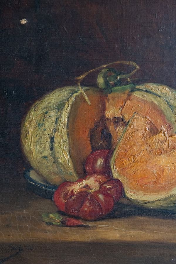 Natura morta con melone, dipinto francese, Fine XIX secolo