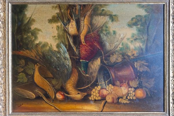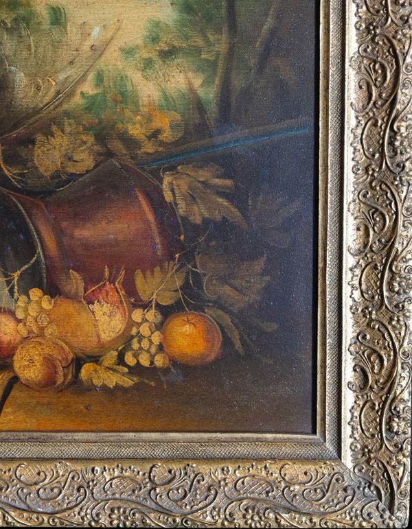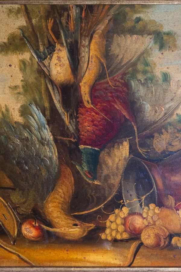Natura morta con pennuti con cornice in oro antico coeva, Anni '30