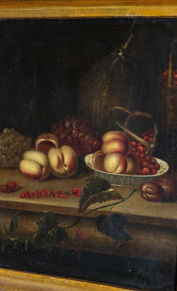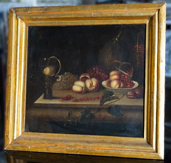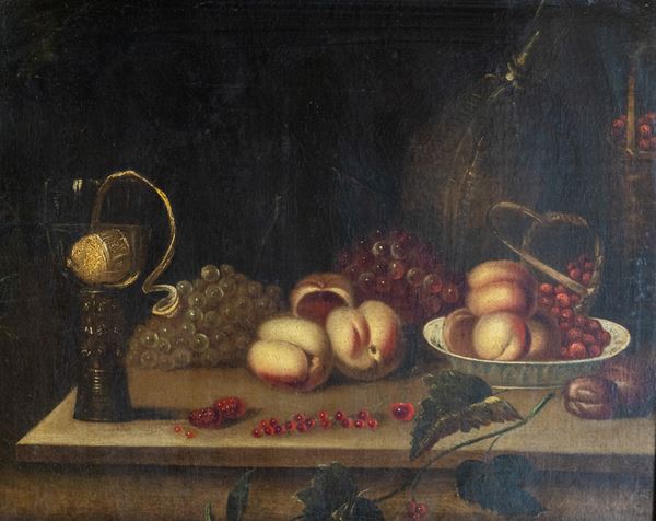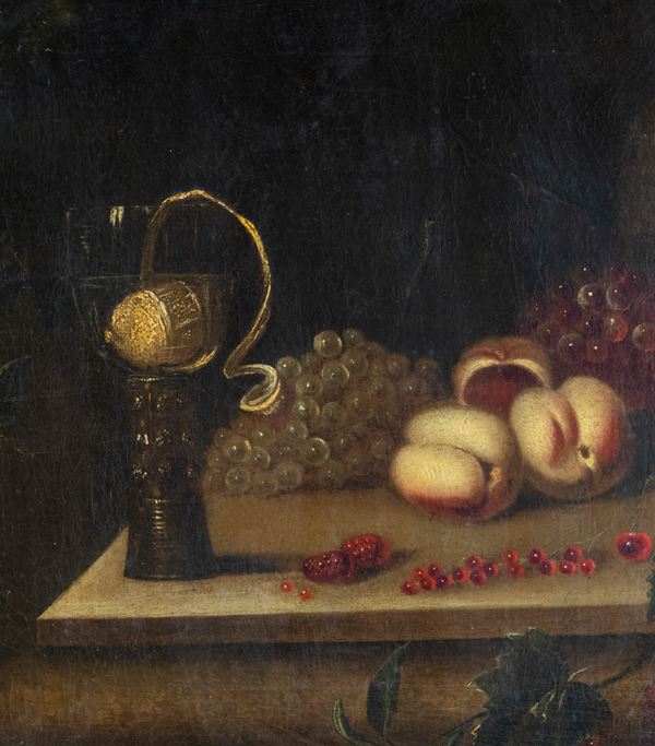Natura morta con uva e pesche, scuola fiamminga, Primi del XVIII secolo