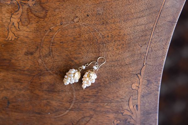 Orecchini in oro a grappolo d’uva con microperle di fiume