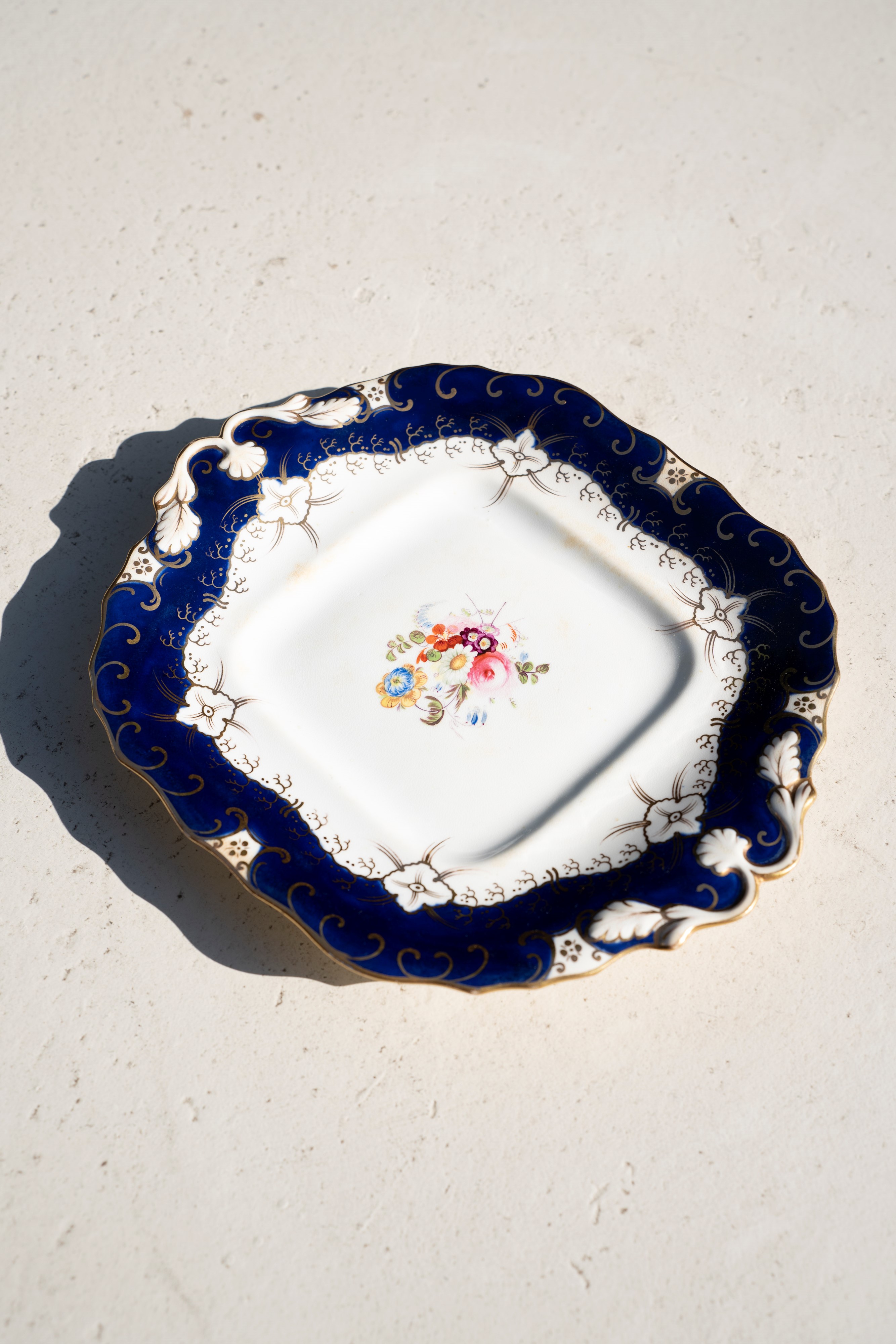 Piatto inglese da dolce con motivi floreali, Inizio XIX secolo