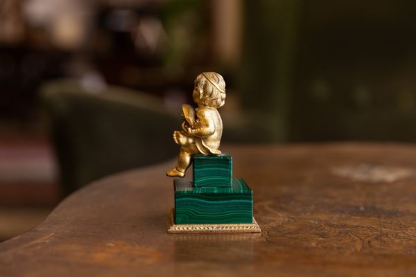 Putto in malachite e bronzo dorato