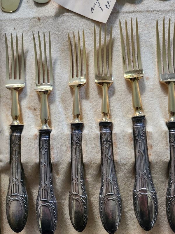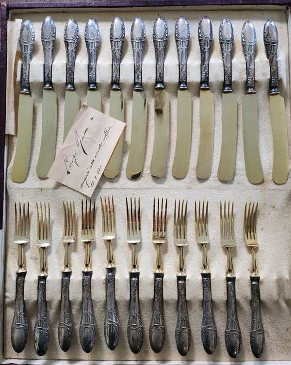 Servizio di posate da frutta in ottone e lamina d'argento, Primi del '900