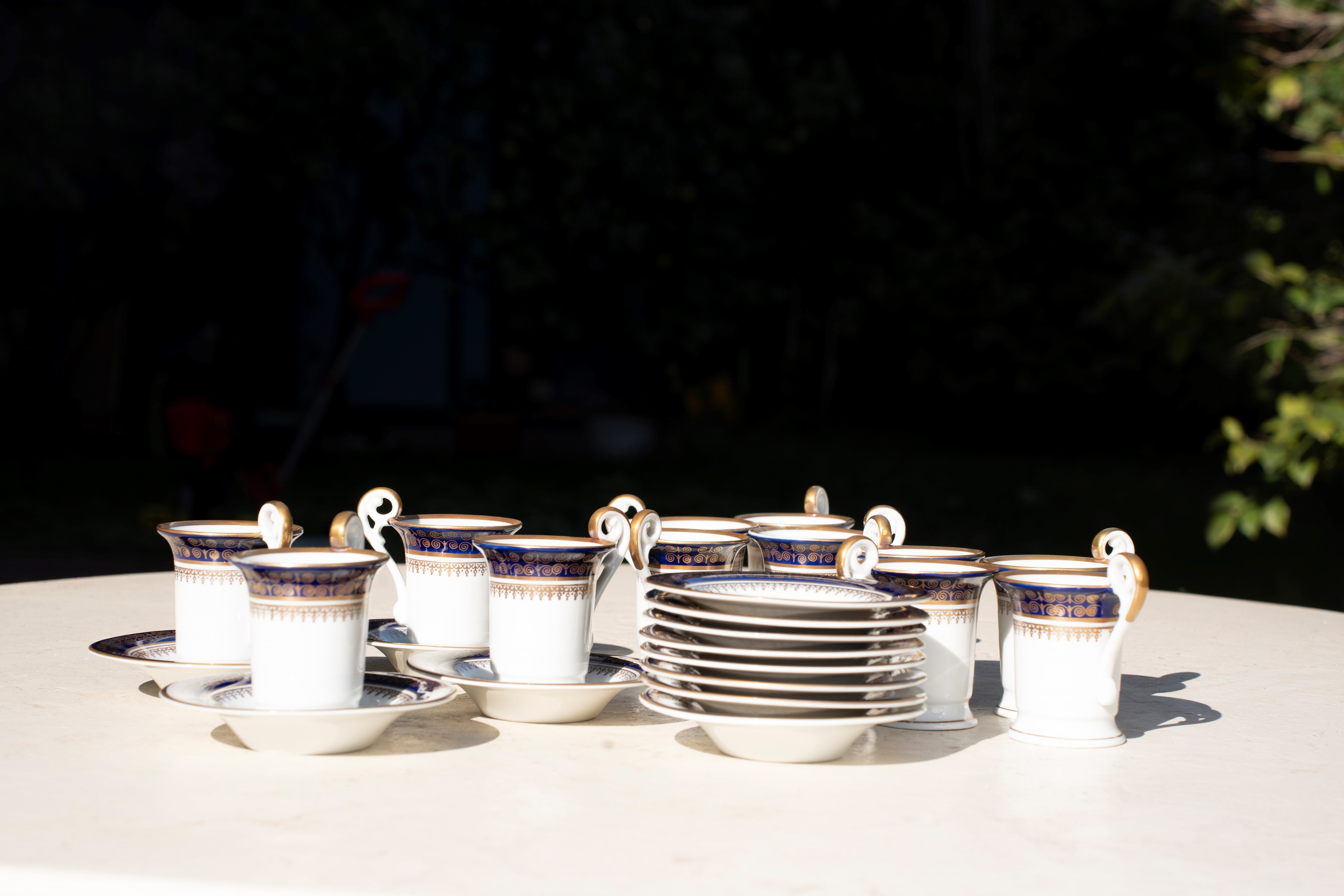 Set caffè per 12 in stile impero made in GDR Echt Kobalt