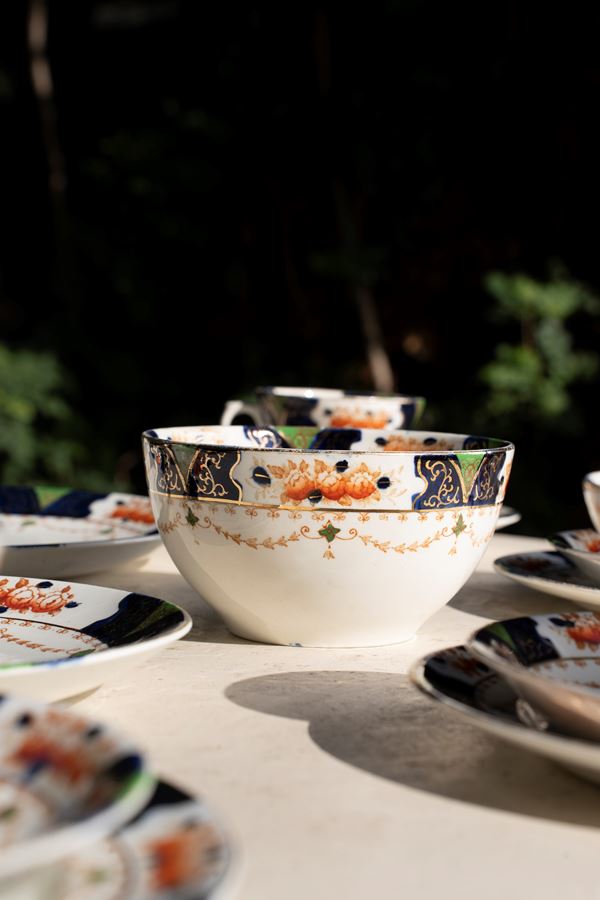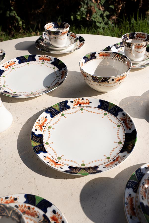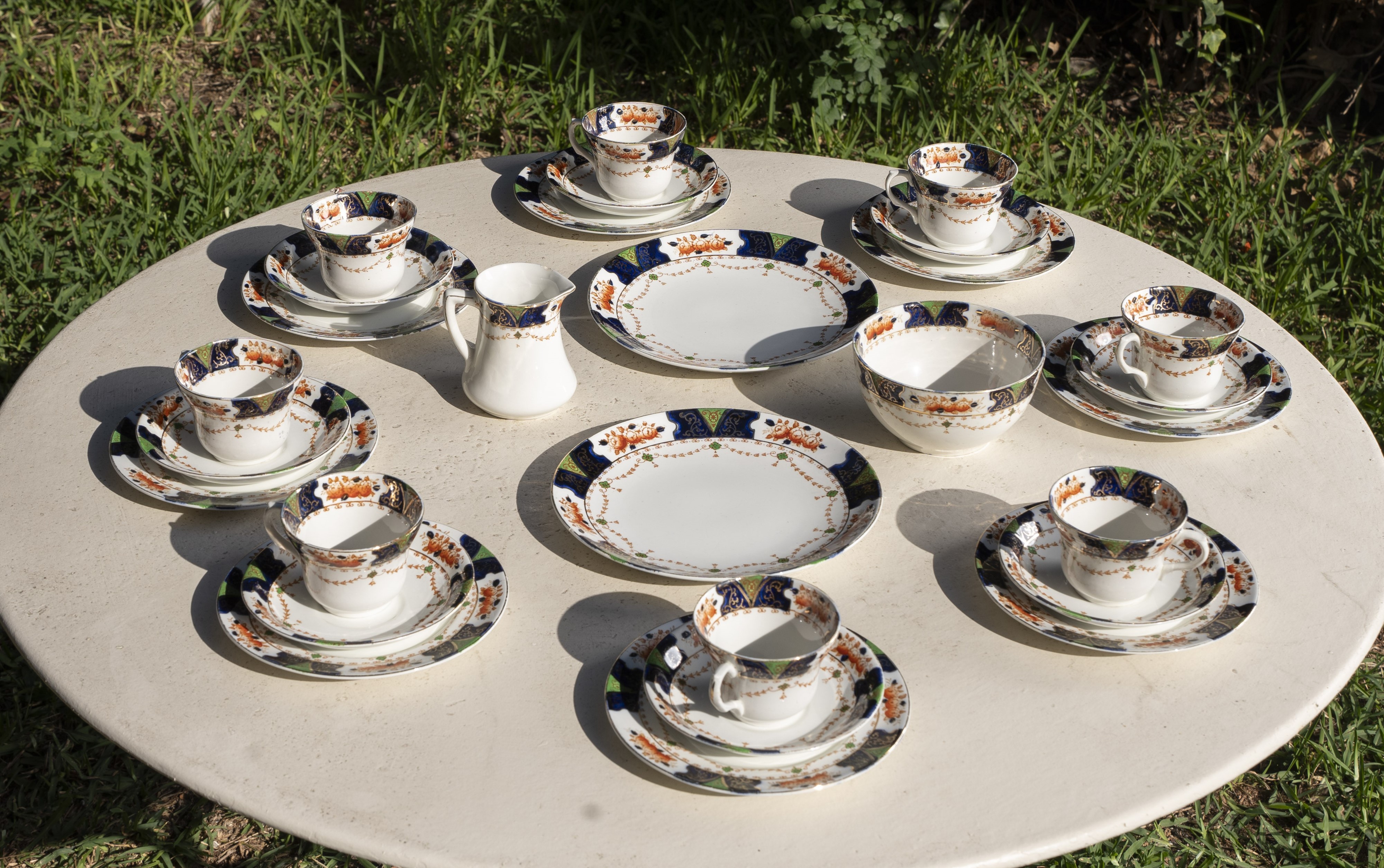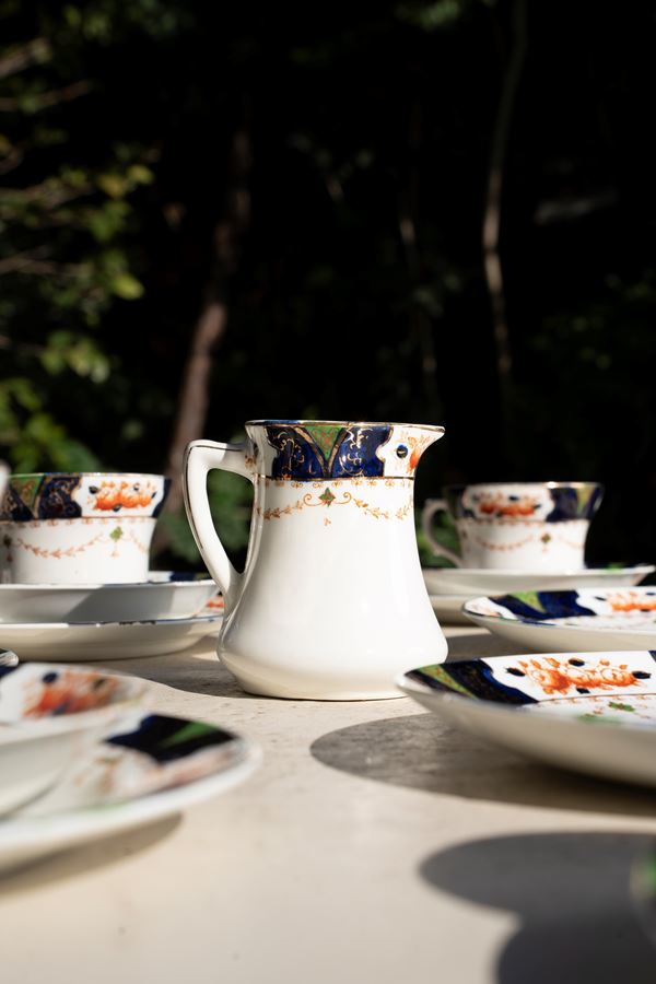 Composto da 8 tazze, una lattiera, una zuccheriera, 2 piatti dolce, 9 piattini, 9 sottopiatti