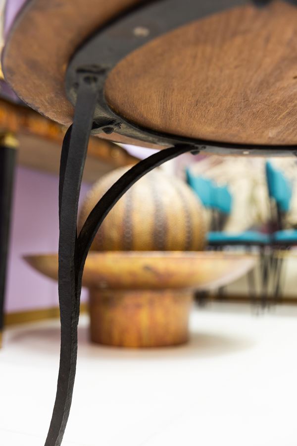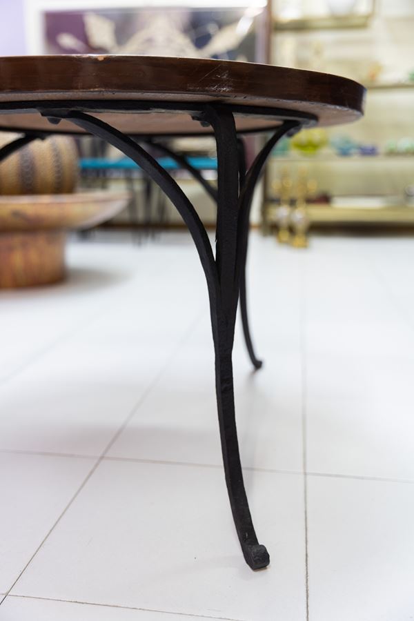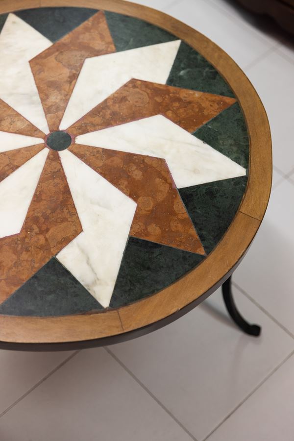 Tavolino da caffè in ferro battuto e mosaico di marmi policromi