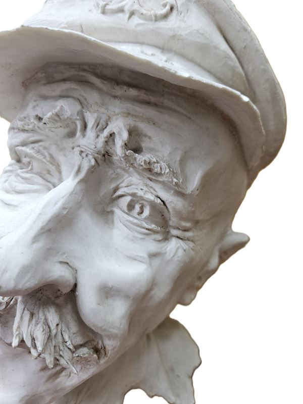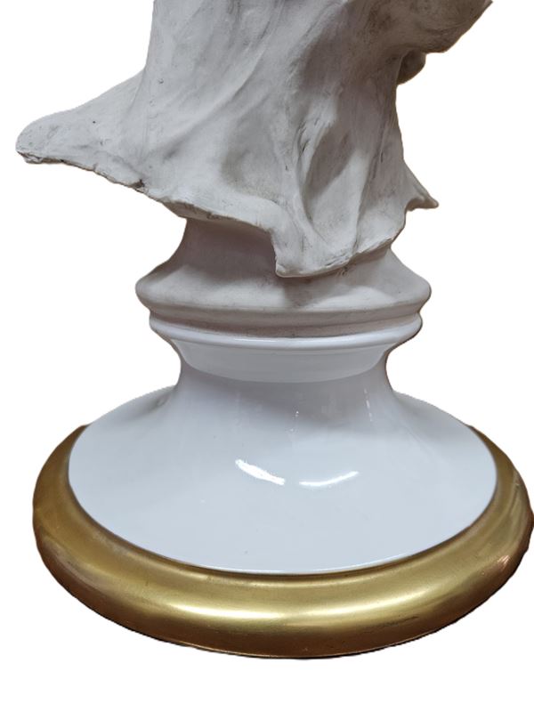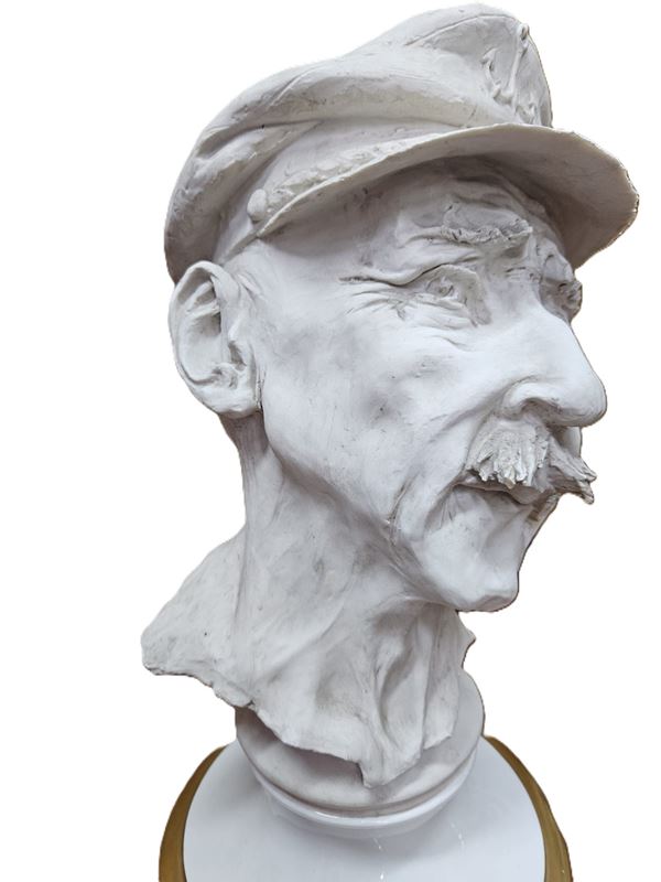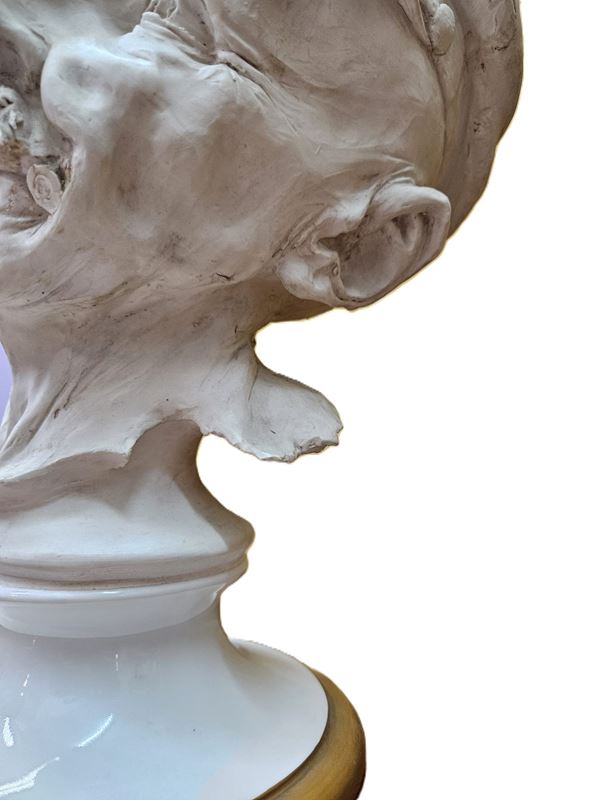 Volto di marinaio Capodimonte, in stucco caulino e base in porcellana bianca lumeggiata in oro, Anni '50