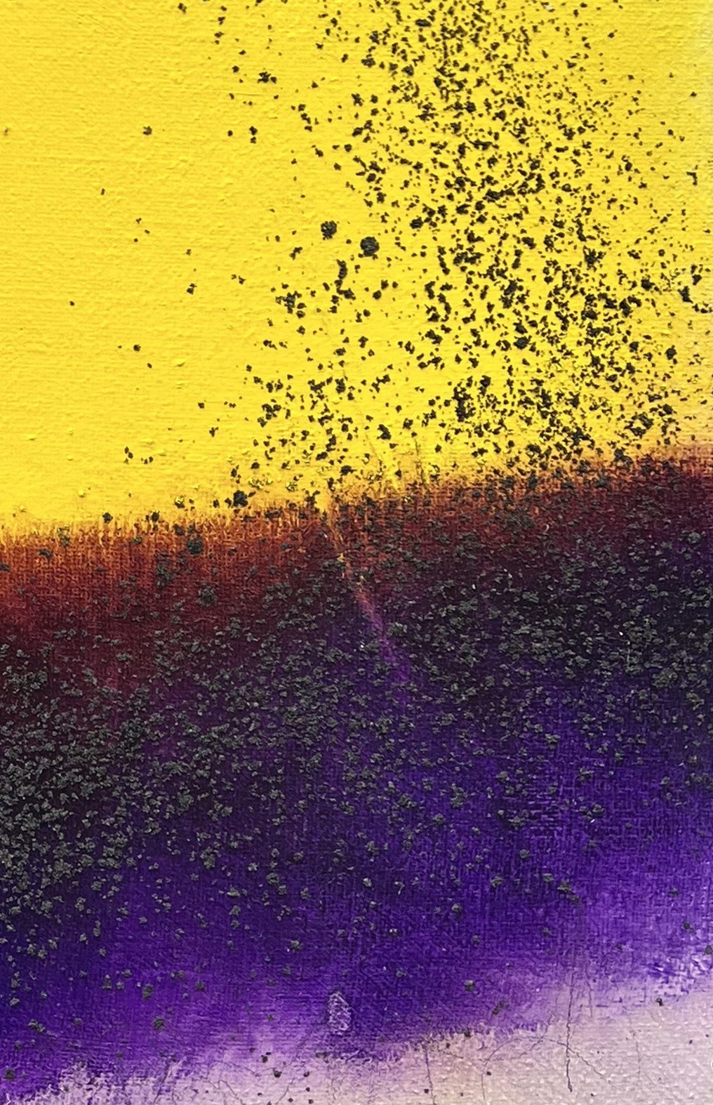Olio, matita e cenere vulcanica su tela di iuta